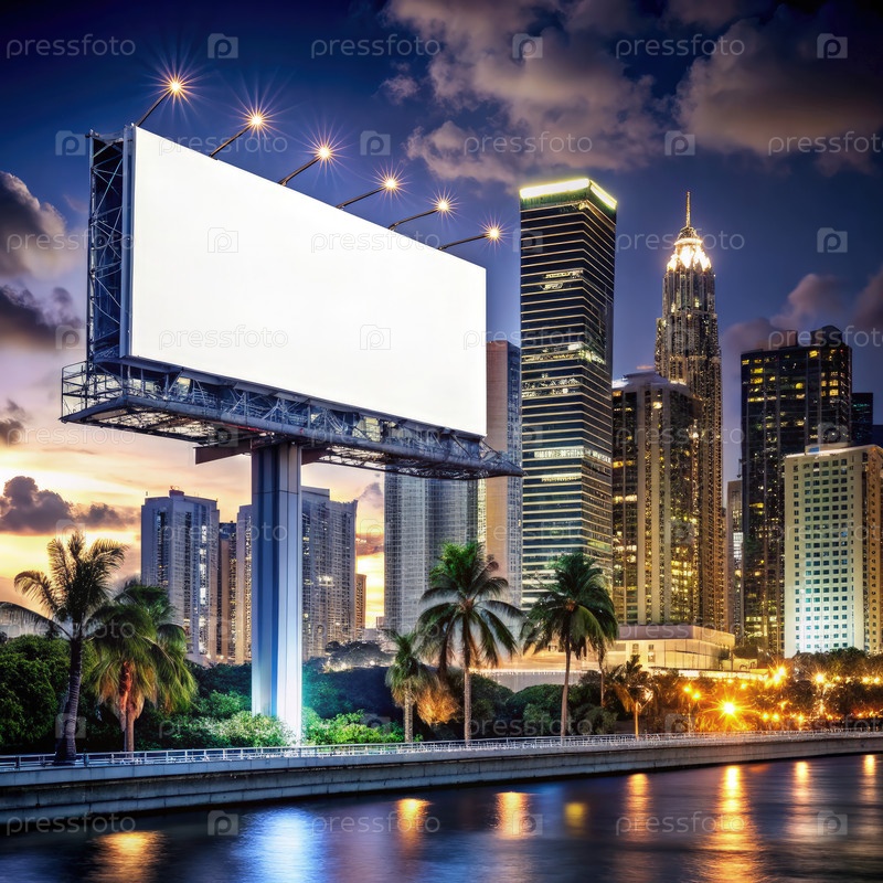 Пустой билборд в городском ландшафте Майами на рассвете