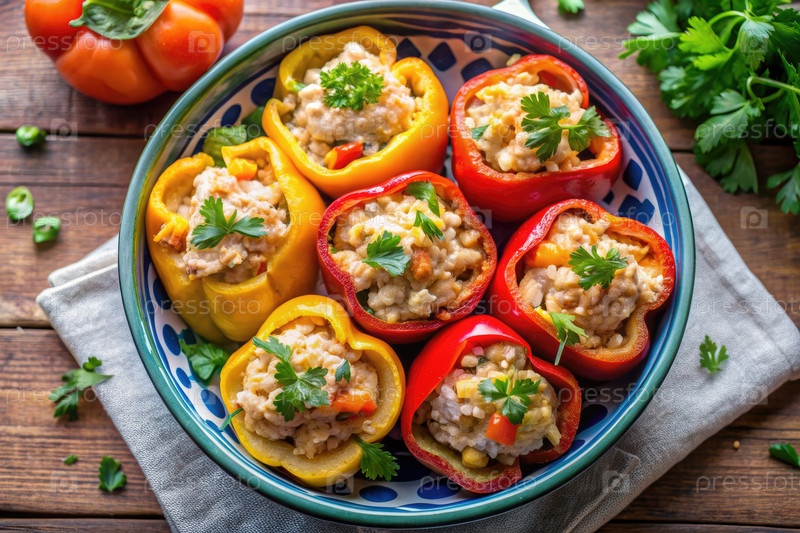 Генеративная ИИ вдохновленный куриные фаршированные перцы, верхний вид