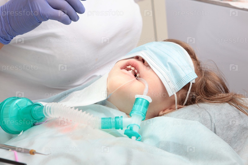 Дыхательная трубка во рту ребенка. Ребенок находится под наркозом. Лечение молочных зубов под анестезией. Открытый рот. Современная стоматология. Непризнанный человек