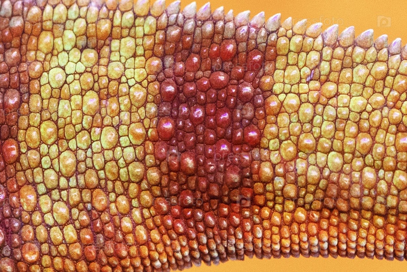 Близкий план кожи хамелеона. Кожа хамелеона. Близкий план кожи хамелеона для фона и обоев. Экзотическое животное. Текстурированный фон
