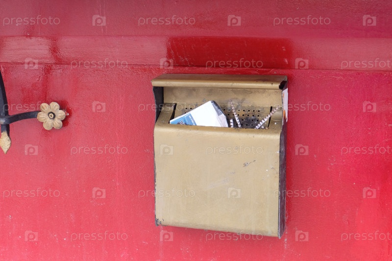 Золотая настенная пепельпица с окурками на красном фоне