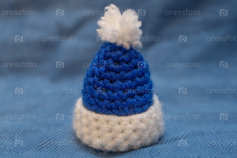 Вязаная шапочка сине-белого цвета из акрила для мягкой игрушки