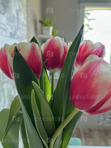Розовые тюльпаны со светлой границей на лепестках являются цветами, которые символизируют Международный женский день