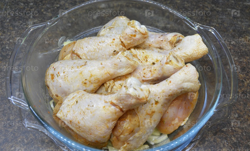 Оленье цыпленок, маринованное в томате со специями, выложенным в стеклянной блюде