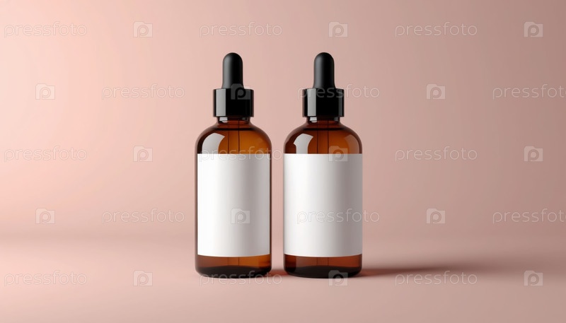 Контейнер косметического продукта с пипетой Пустой этикеткой Пастельный Розовый фон