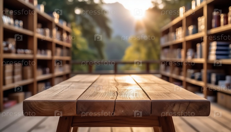 Пустой деревянный стол в уютной мастерской Рустичный интерьер Фон для фотографии продукта