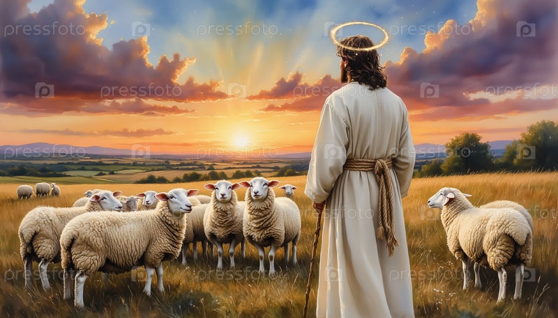 Религиозный плакат Иисус как Добрый Пастырь Digital Artwork