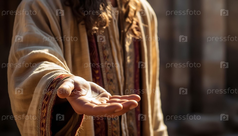 Рука Иисуса протянута вперед с пальмой вверх Божественный жест благословения