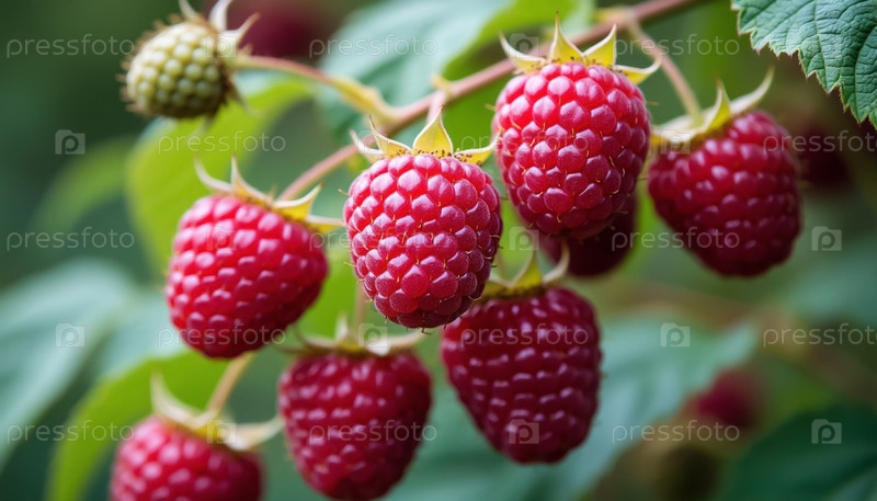 Большое разнообразие малины на ветке свежие ягоды Close Up Macro Photography