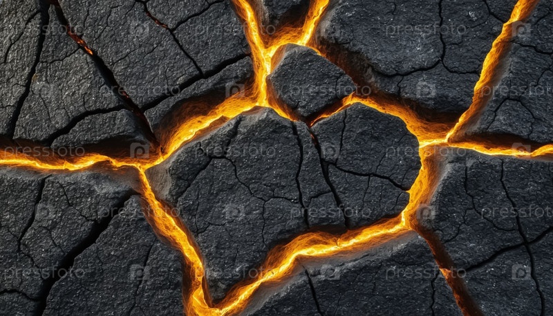 Светящиеся желтые золотые трещины на черном зернистом каменном текстуре фоне