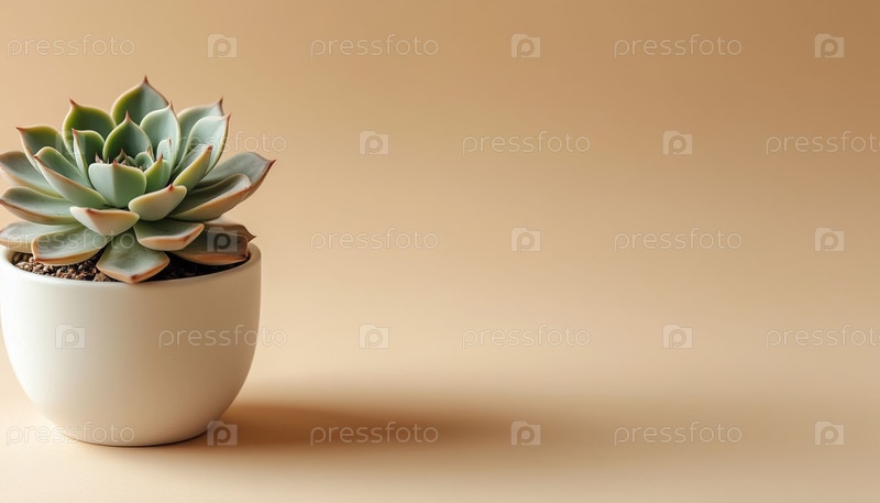 Суккулент в белом горшке Бежевый фон Минималист