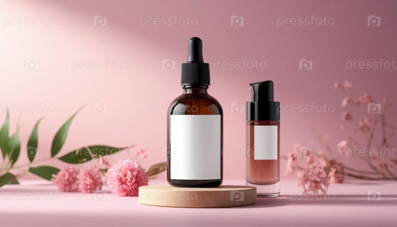 Контейнер косметического продукта с пипетой Пустой этикеткой Пастельный Розовый фон