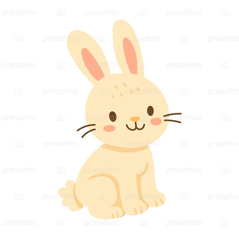 Милая пастельная иллюстрация пасхального кролика с красными щеками и мягкими формами, идеально подходит для детского декора, поздравительных открыток и дизайна весенних праздников