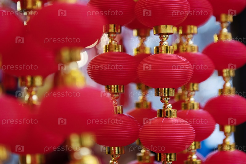 Национальная гирлянда красных китайских фонарей. Китайский Новый год. Традиционные фонари красного цвета. Фон дизайна