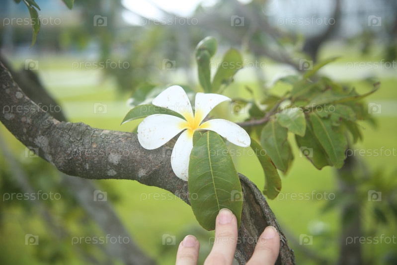 Белый экзотический цветок в саду крупным планом