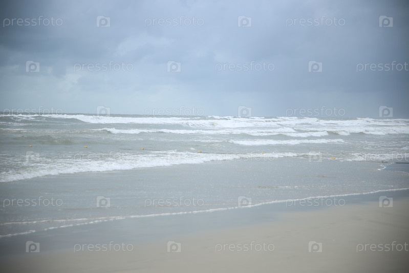 Пейзаж с видом на песчаный пляж, волны и синее небо на курорте