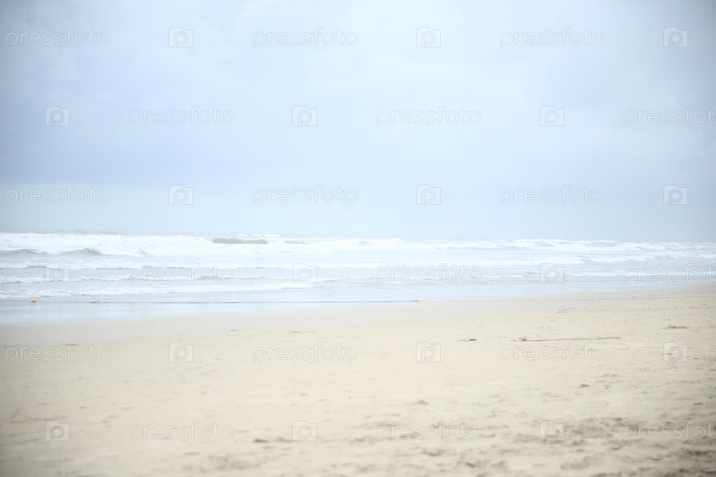 Пейзаж с видом на песчаный пляж, волны и синее небо на курорте