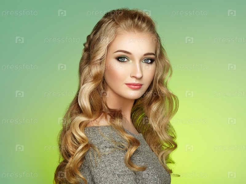 Блондинка с длинными блестящими кудрявыми волосами