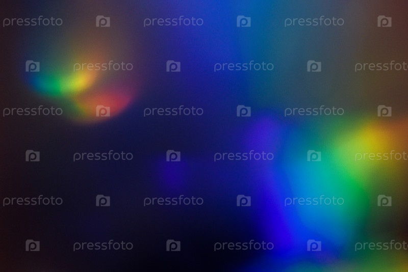 Абстрактные цветные отражения света создают яркий спектр цветов на темном фоне, демонстрируя смесь синих, зеленых, желтых и красных оттенков