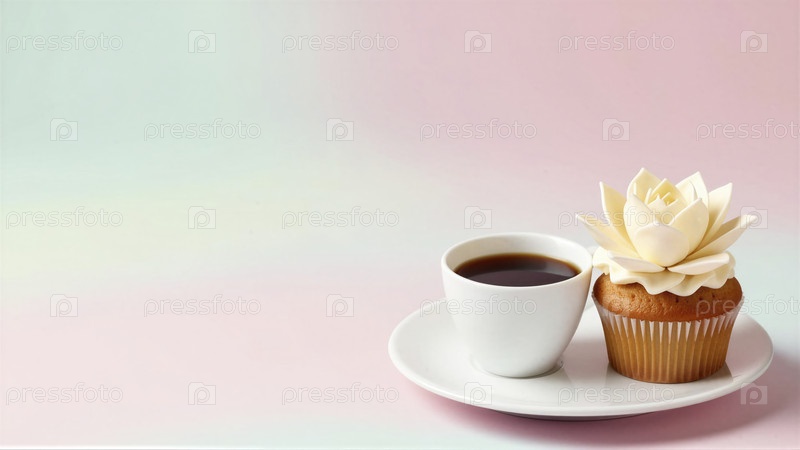 Кофе и кексы с белым цветочным мороженым