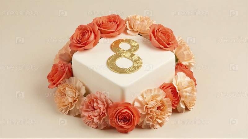 Элегантный праздничный торт на восьмой день рождения с цветами