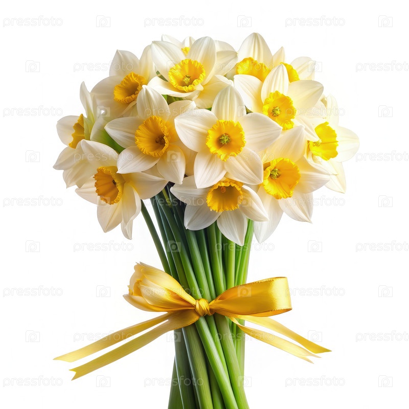 Свежий белый букет нарцисса с желтым луком. генератив AI
