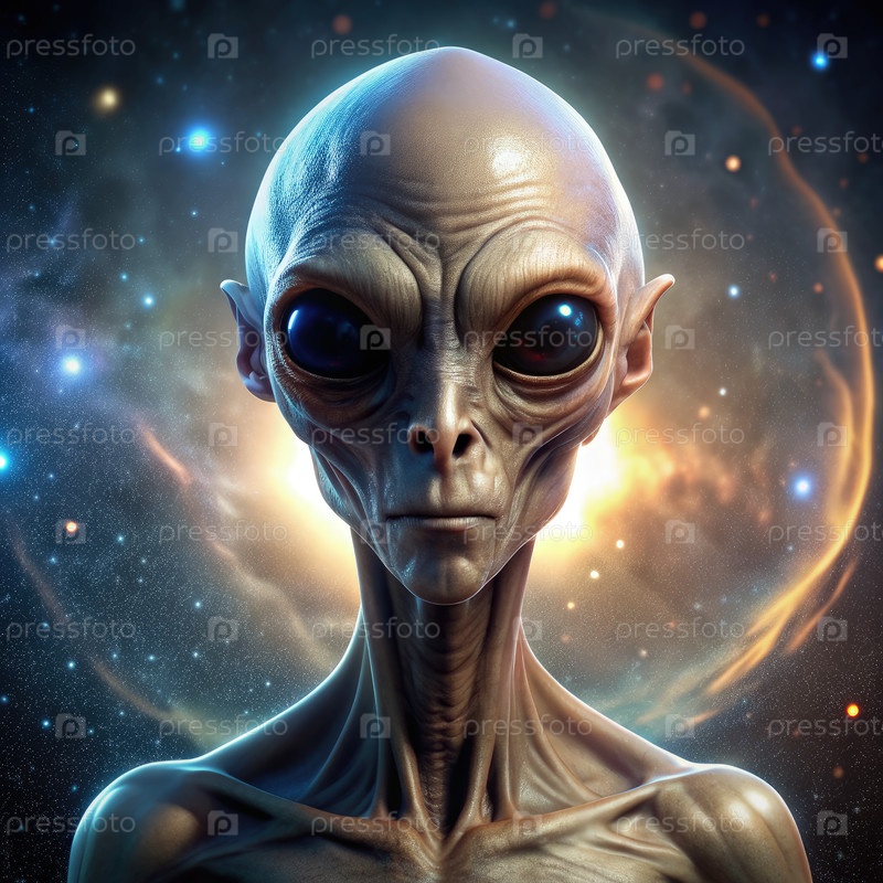Реалистичное CGI изображение инопланетянина в космической обстановке