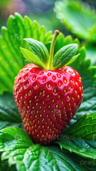 Ближайшее изображение спелой клубники на зеленых листьях