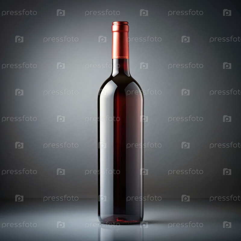Одинокая бутылка красного вина на сером фоне