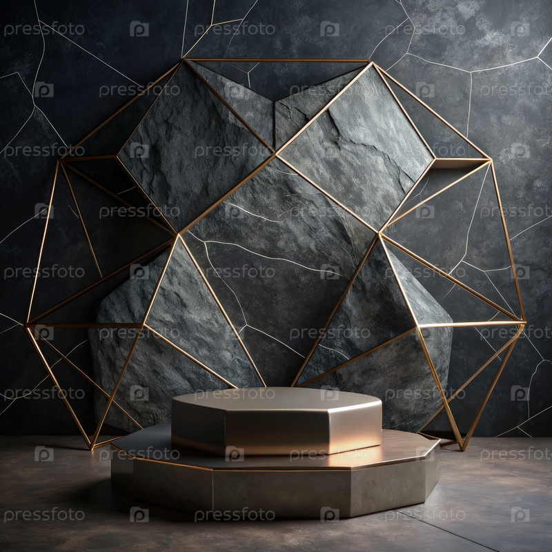 Геометрический камень и золотая рамка Фон с восьмиугольным пьедесталом