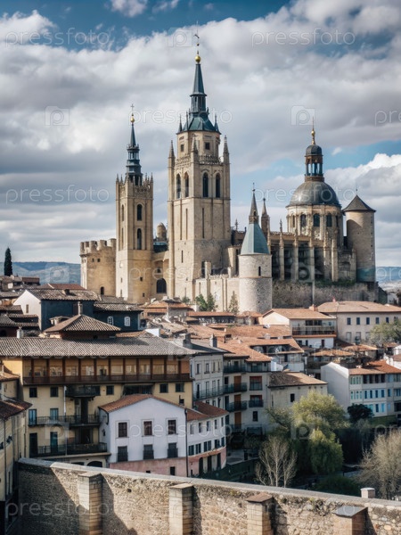 Собор Сеговии и городской пейзаж в Испании в солнечный день
