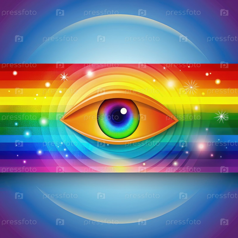 Цветные глаза с радужным градиентным баннером. генеративный AI