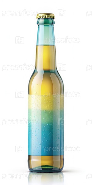 Одиночная бутылка пива с синим и желтым этикетками