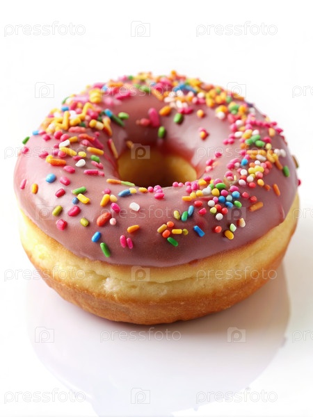 Однорозовый остекленный пончик с щелчками на белом фоне