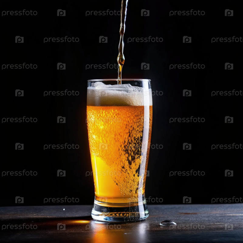 Золотое пиво, выливающееся в стакан на черном фоне