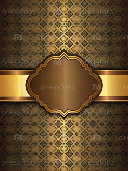 Оформленная золотой и коричневой обложкой страница с декоративной рамой. генеративный AI