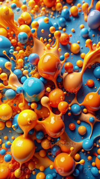 Цветные жидкие сферы брызгут и взаимодействуют. генеративный ИИ