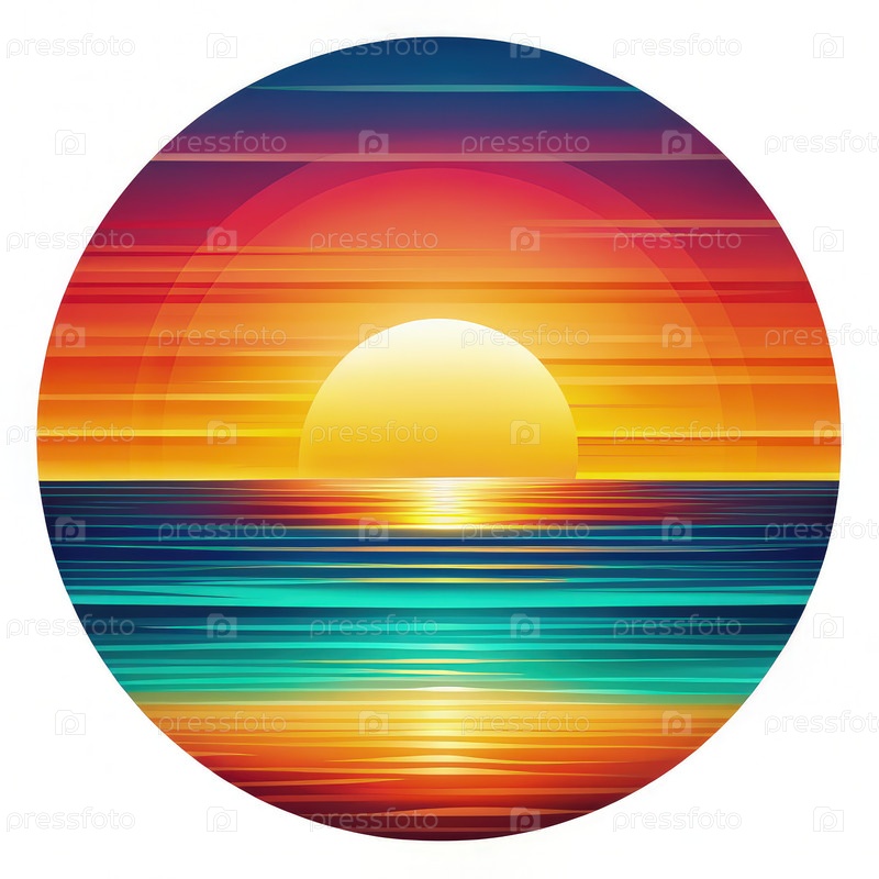 Живой винтажный круг иллюстрация заката над океаном. генеративная ИИ