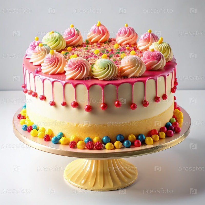 Декорированный торт на день рождения с вихревым мороженым и красочными посыпаниями