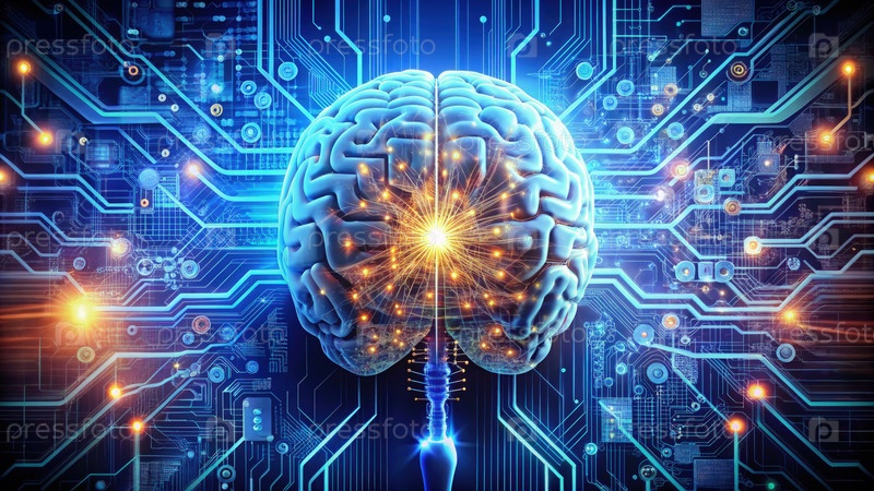 Цифровая иллюстрация мозга с фоном платы. генеративный ИИ