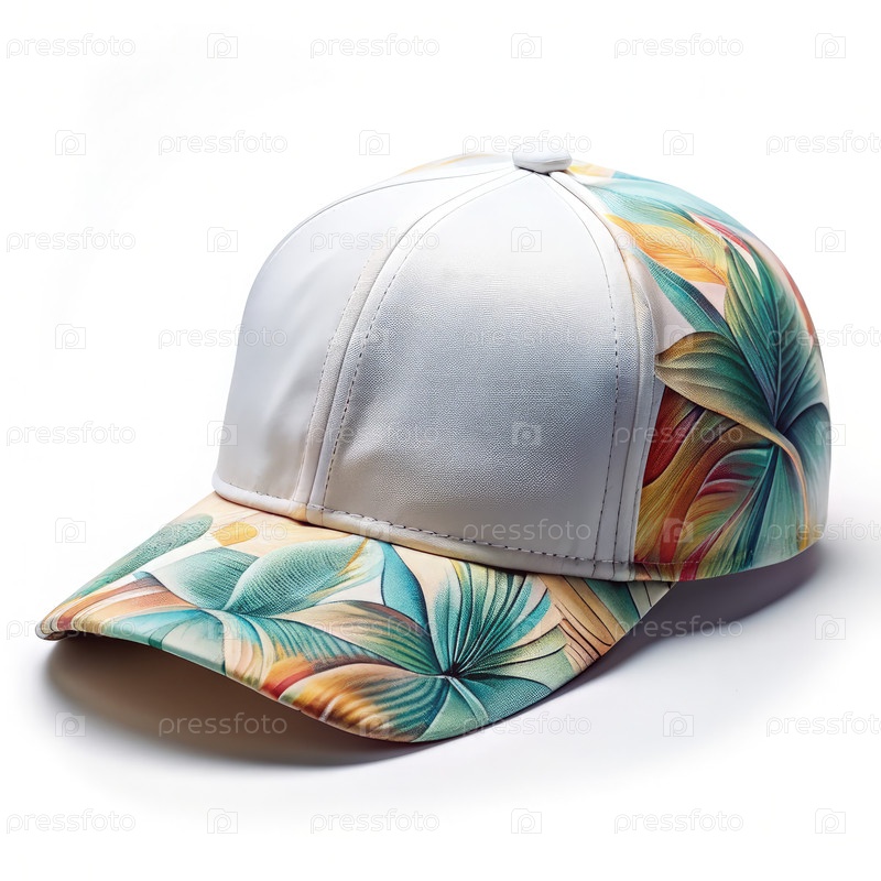 Белая бейсбольная шапка с дизайном тропических листьев