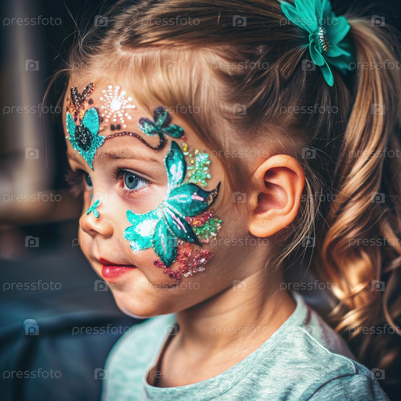 Молодая девушка с воздушной щеткой временная татуировка цветов и блеска. генеративный AI