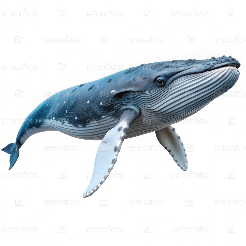 Горбатый кит нарушает белый фон. генеративный ИИ
