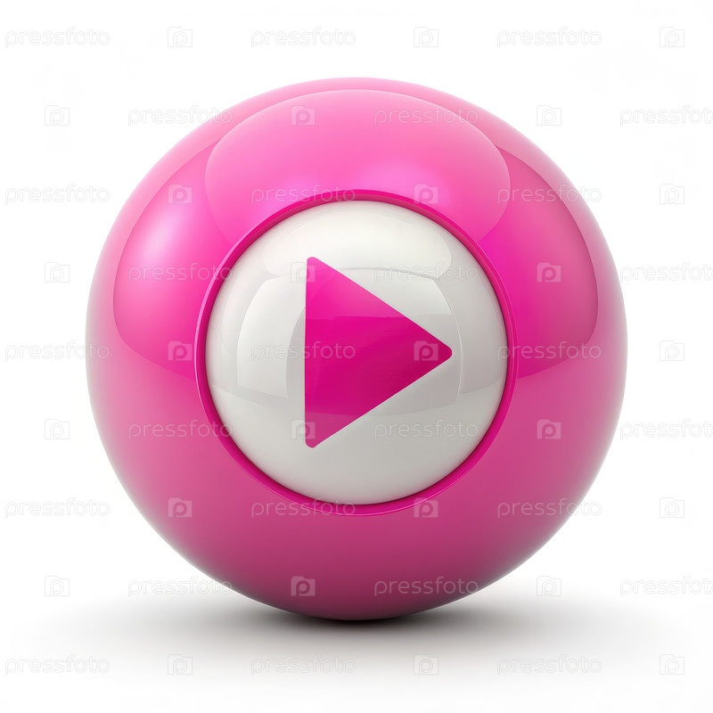 Розовая кнопка воспроизведения на глянцевой сфере. генеративный ИИ