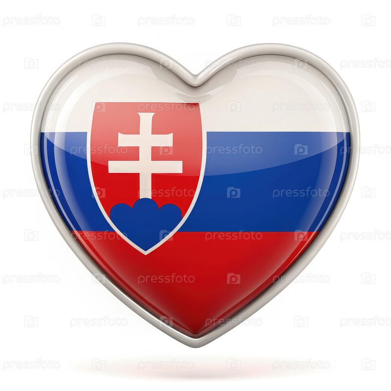 Сердечная форма флага Словакии:Кнопка в форме сердца, на которой изображен словацкий флаг с серебристой границей.Флаг состоит из трех горизонтальных полос.Генеративный AI