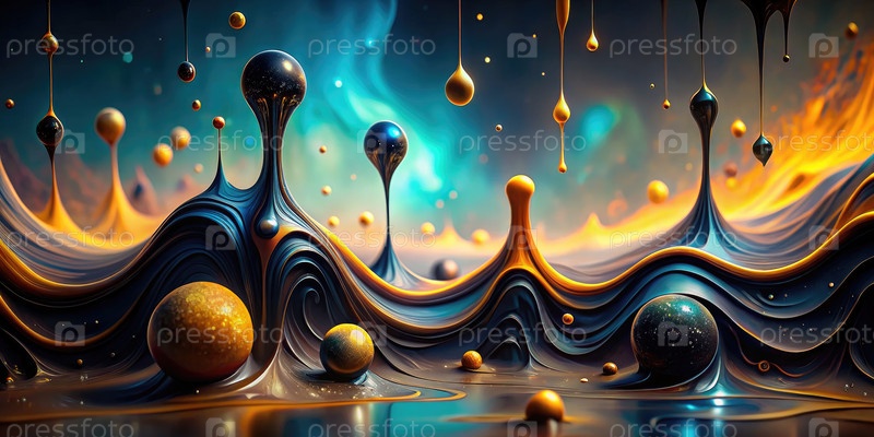 Абстрактное жидкое искусство с капельками и вращающимися цветами