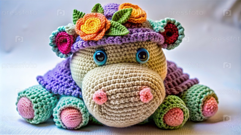 Цветная вешалка гиппопотам, несущим цветы. генеративный AI