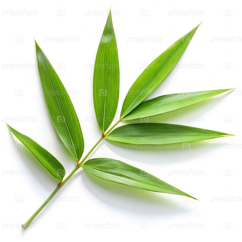 Одинокий зеленый бамбуковый лист на белом фоне