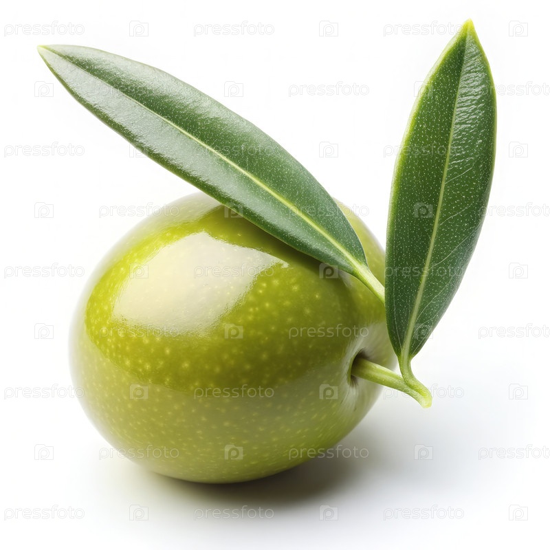 Однозеленое оливковое дерево с двумя маслиновыми листьями на белом фоне
