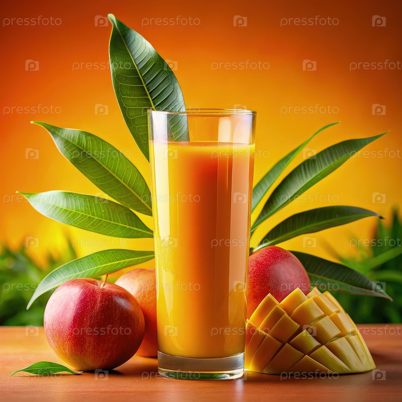 Освежающий сок манго с нарезанными мангами и яблоками. генеративный ИИ
